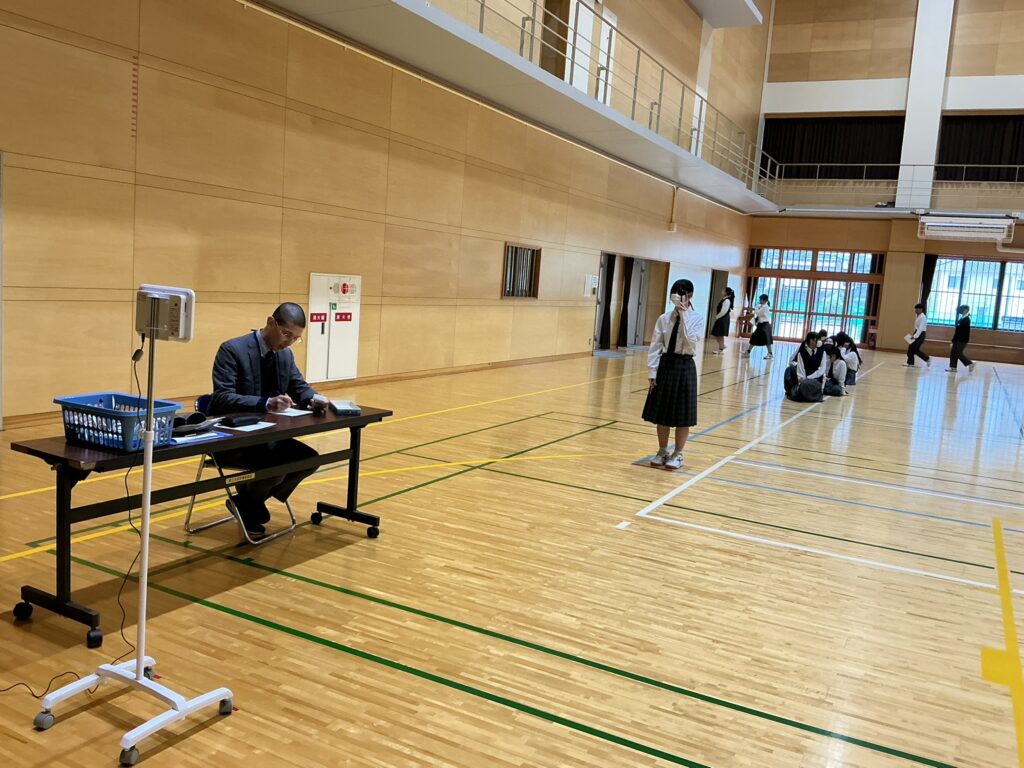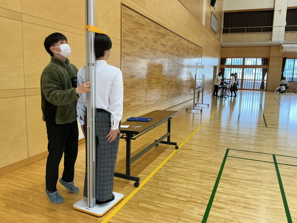 4月15日(火)3学年それぞれの時間に身体計測を行いました。中学生の時期は、身長や体重といった体の成長だけでなく、心の面でも大きく変化し、自分らしさを見つけていく大切な時期です。今日は「身長、体重、視力、聴力(1・3年のみ)」でした。測定の場面では、友だちと声を掛け合いながら和やかに順番を待つ姿や、自身の成長に関心をもって結果を確かめる様子がありましたね。一人ひとりの成長はそれぞれのペースで進んでいきます。今回の計測をきっかけに、自分の体と向き合い、健康への意識を高めていってほしいと願っています。今後も心身ともに健やかに成長していく姿を温かく見守っていきたいと思います。
