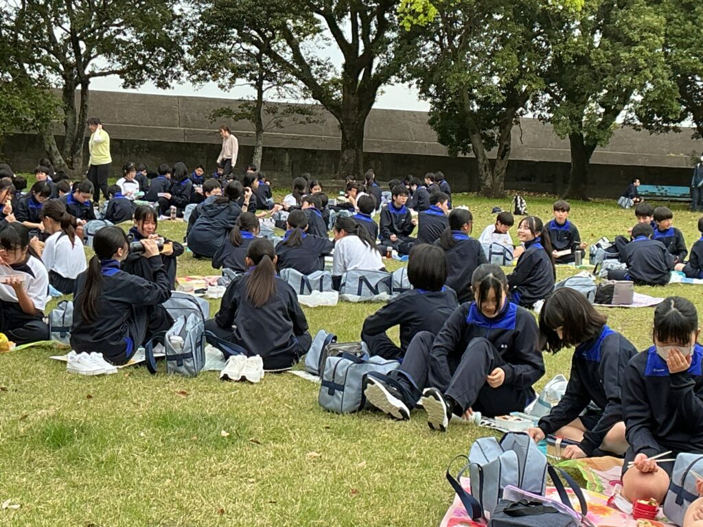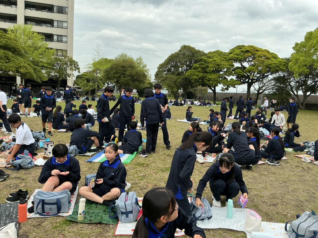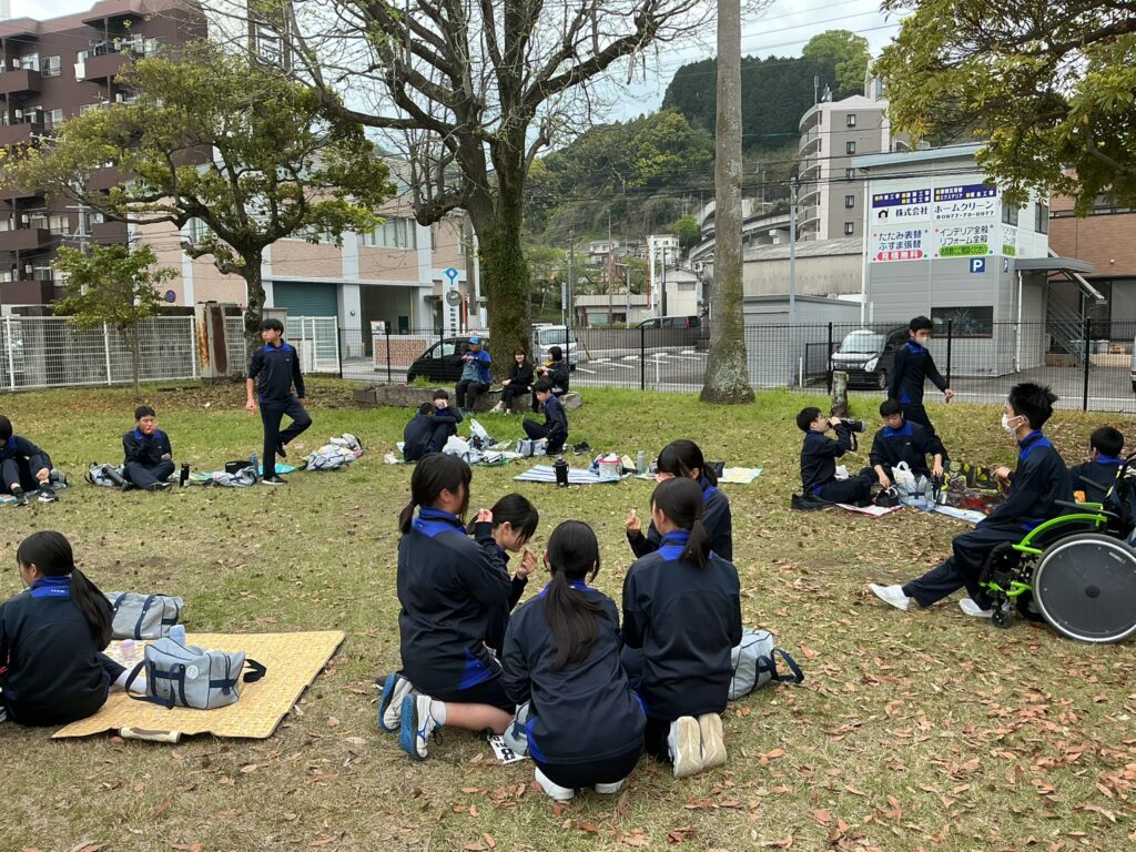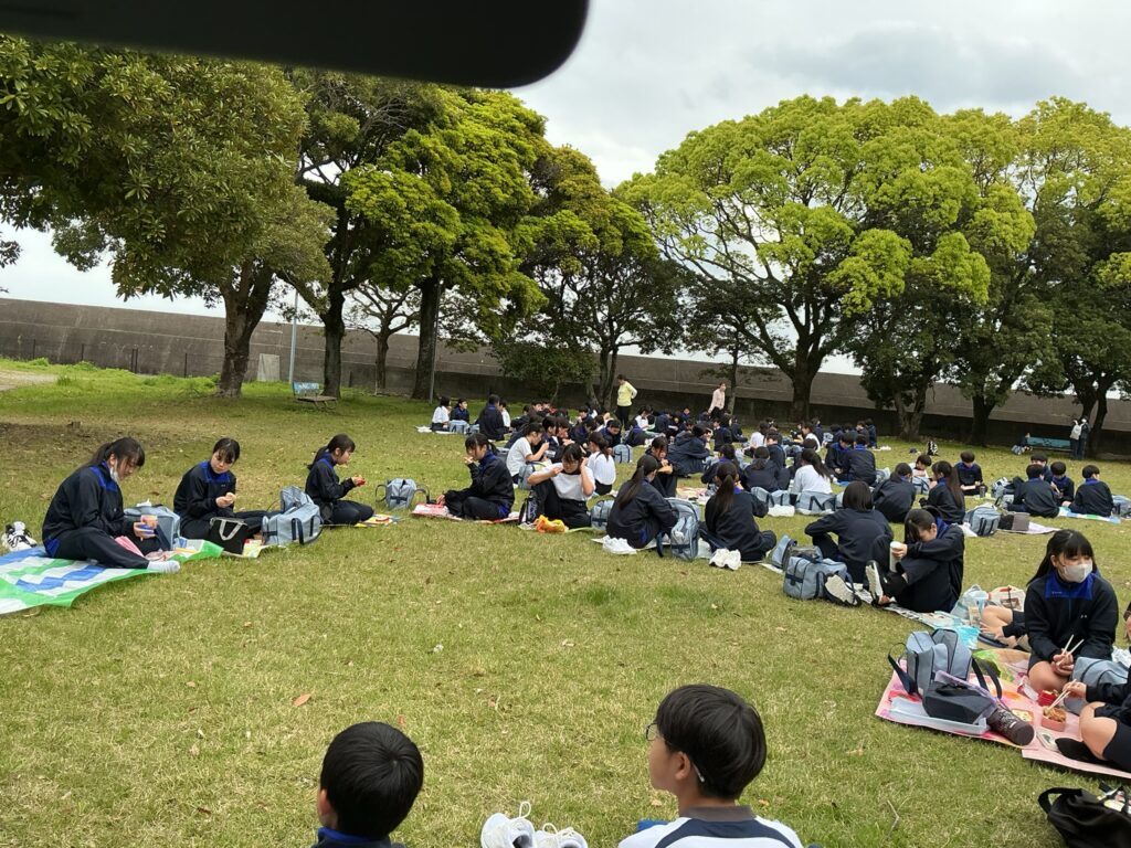 今年は浜脇東公園まで約2.2kmの道のりを歩きました。週の前半は雨予報もありましたが、当日は暑すぎることもなく、春らしい穏やかな天候に恵まれました。学級開きから間もない時期ではありますが、普段あまり話す機会のない友達と交流したり、新たな一面に気付いたりと、関係づくりのよい機会になったことと思います。また、帰路では防災学習も兼ねて行動し、学校到着後には遠足とあわせて振り返りを行いました。校長は出張のため同行できず残念でしたが、生徒一人ひとりにとって実りある一日となったことを嬉しく思います。保護者の皆さま、お弁当の準備…ありがとうございました。