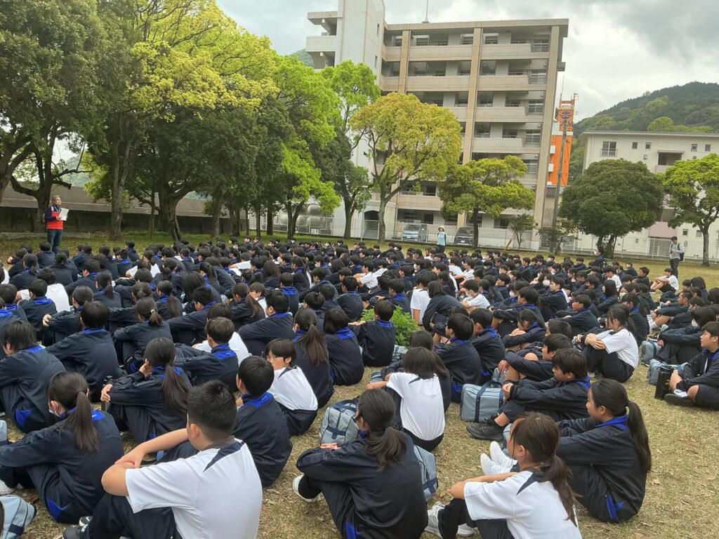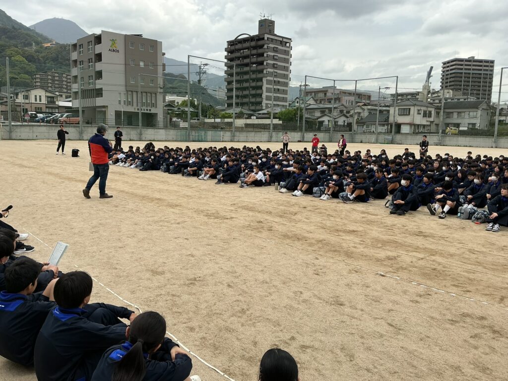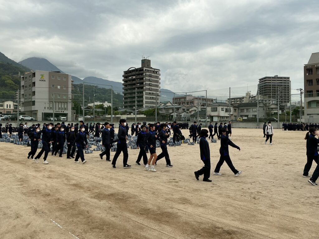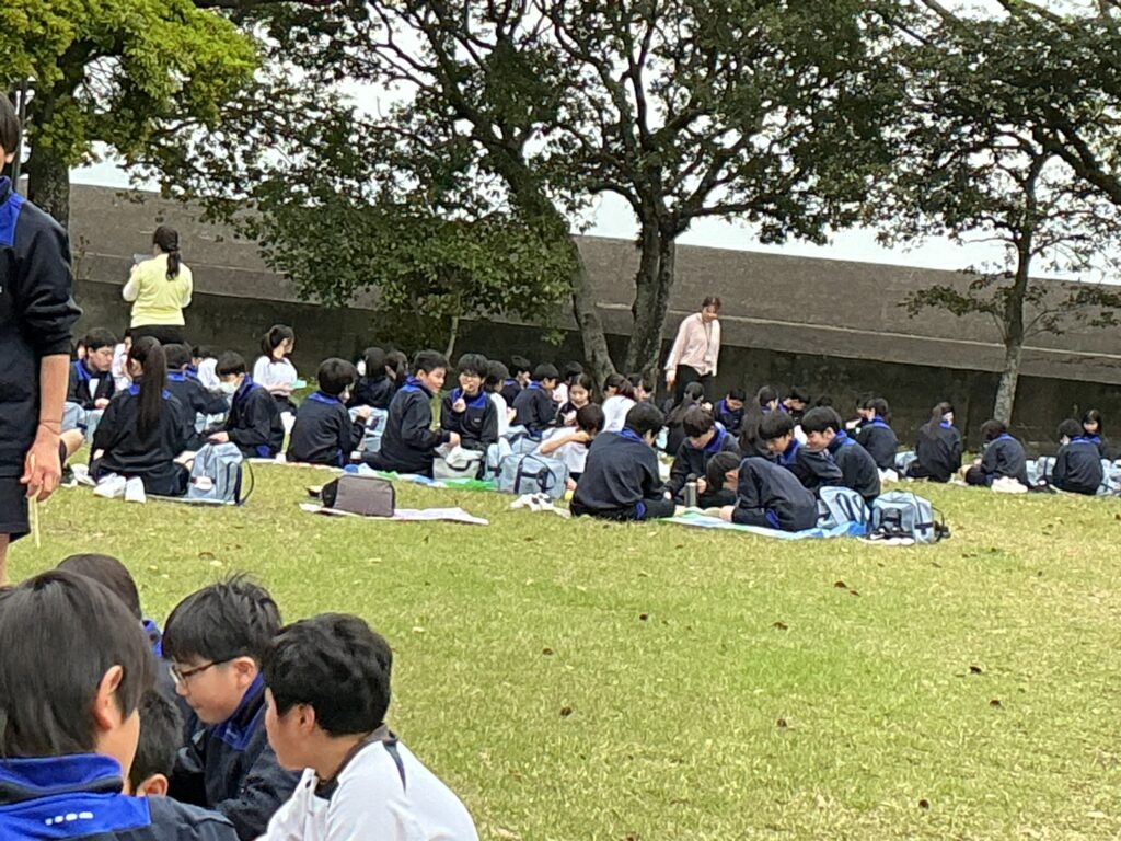 今年は浜脇東公園まで約2.2kmの道のりを歩きました。週の前半は雨予報もありましたが、当日は暑すぎることもなく、春らしい穏やかな天候に恵まれました。学級開きから間もない時期ではありますが、普段あまり話す機会のない友達と交流したり、新たな一面に気付いたりと、関係づくりのよい機会になったことと思います。また、帰路では防災学習も兼ねて行動し、学校到着後には遠足とあわせて振り返りを行いました。校長は出張のため同行できず残念でしたが、生徒一人ひとりにとって実りある一日となったことを嬉しく思います。保護者の皆さま、お弁当の準備…ありがとうございました。
