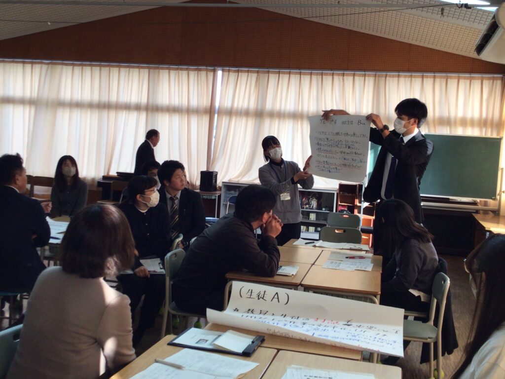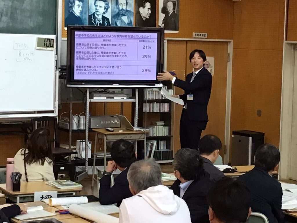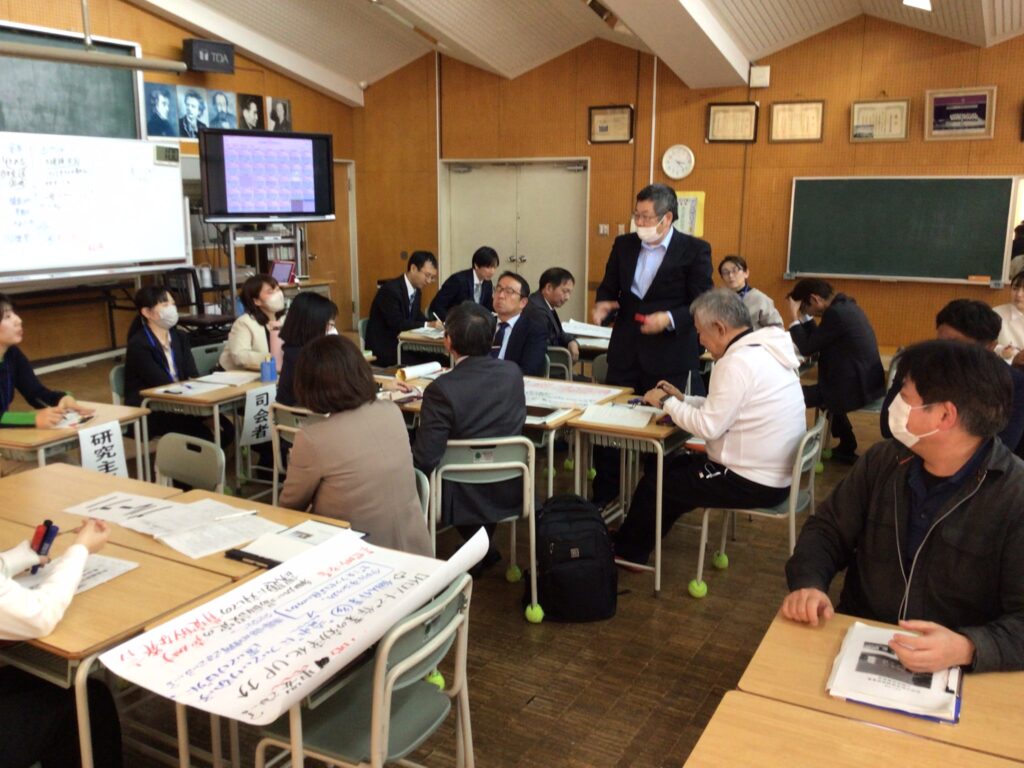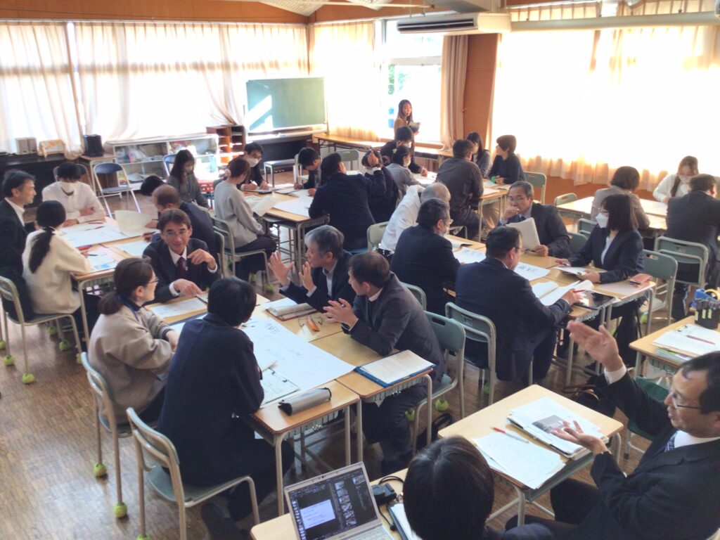 事後研究会では、授業中の生徒の様子をもとに活発な意見交換が行われ、「分かった」「できた」「わかりたい」という学びの循環をどのように生み出していくか、さまざまな観点から議論が深まりました。生徒の小さな変化や学びの兆しを見逃さず、教職員が互いの視点を持ち寄ることで、授業改善の方向性がより明確になってきています。