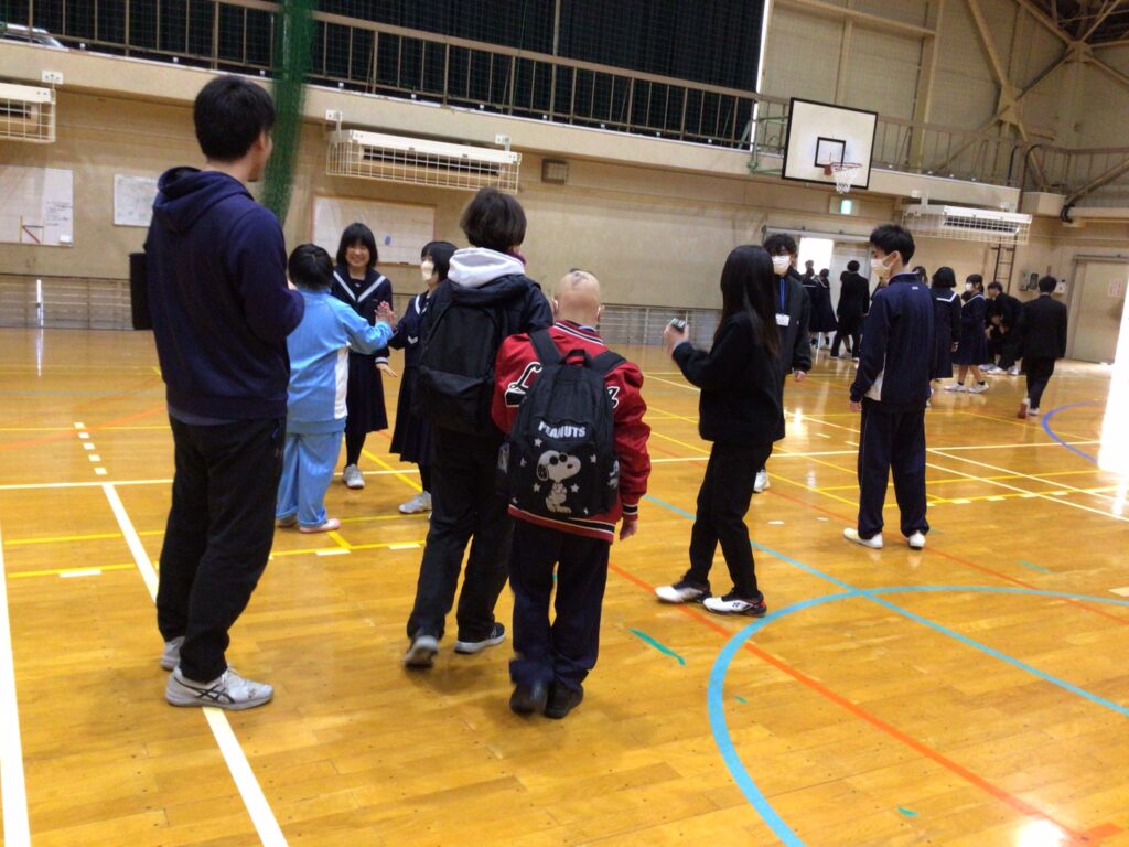 始めは、お互いに様子を見合う・・らしからぬ雰囲気でしたが、競技が進むにつれ、勝負にこだわりながらも、いつもの笑顔がはじけていました。わずかな時間でしたが、最後はハイタッチをする場面もあり、楽しい時間を過ごせました。