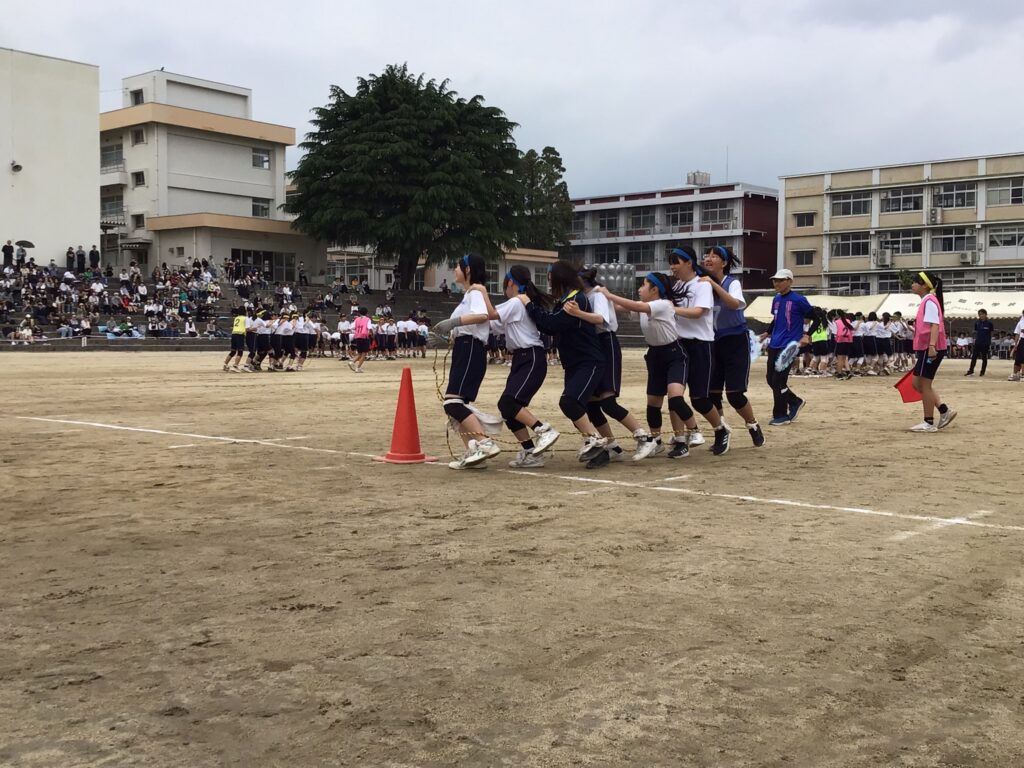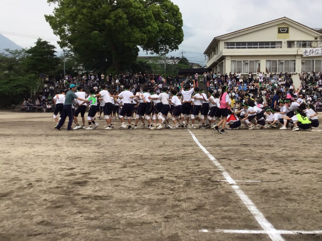 5月18日(日)予定日から1日順延し、さらに正午に開会した体育大会。“光輝燦然” のスローガンのもと、生徒の手でつくる体育大会は、見事な出来栄えでした。学年を跨いだ「連合」(長縄等)のでの競い合いも生徒間の絆を深められた有意義な取組みになりました。