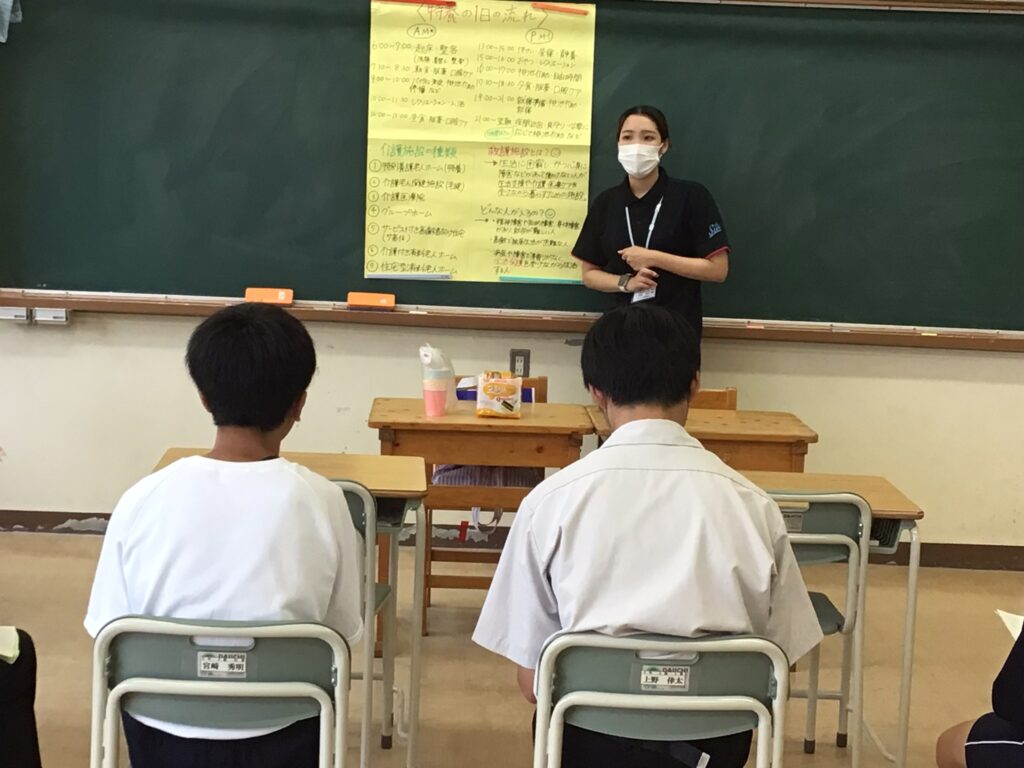 7月16日(水)3・4限、3年生を対象にドリームスクール(職業講話)を行いました。生徒を少人数グループに分け、16教室(16業種)で行いました。市内外から18名(内6名は中部中の卒業生)の講師をお迎えし、就職に至った経緯やご自身の信念やプライド、仕事の表面から裏の奥の方まで深い話をしてくださいました。お忙しい中、この日のためにわざわざ準備してくださったんだろうな、と思われるものもたくさんあり、感謝の気持ちでいっぱいです。実際に体験(フラワーアレンジメントやお菓子づくり、鑑識、とろみの食事など)の場面もご準備いただき、生徒は前のめりに見聴きし、真剣な表情で学んでいました。講師の皆さんからは、「素直で本当に素敵な生徒さんばかりですね。」と褒めていただきましたが、それこそ、一生懸命伝えてくださる講師の皆さんだからこそ、生徒は自然に「学びたい!」素直な気持ちになるのでしょう。最後に講師の皆さんと感想発表や振り返りの時間を持ちましたが、集まっていただいた19名の皆さん、それぞれが本当に「いい表情」されています。これが「チーム中部」なんだなと。心から感謝申し上げます。次回の再会を楽しみにしています。