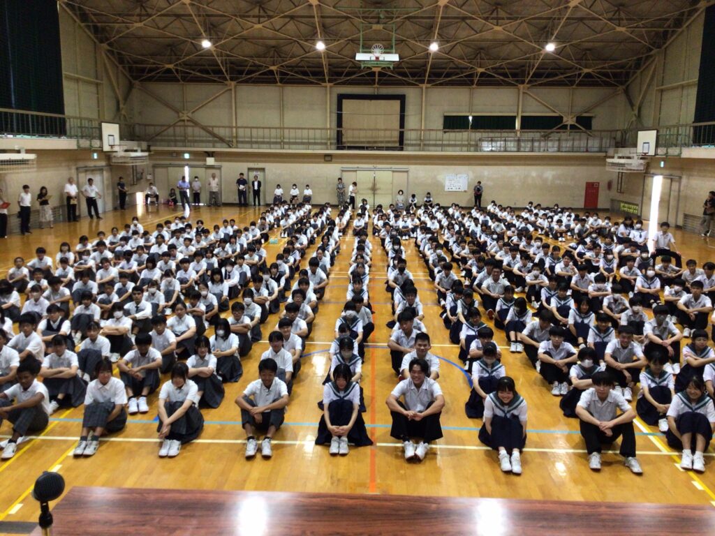 8月26日(火)38日間の夏休みを終え、いよいよ2学期がスタートします。学校には生徒のにぎやかな声が戻ってきました。始業式ではいつものように、整然とした雰囲気づくりをしてくれた2・3年生。そしてそれに倣って動ける1年生。それぞれの使命感や責任感が感じられます。