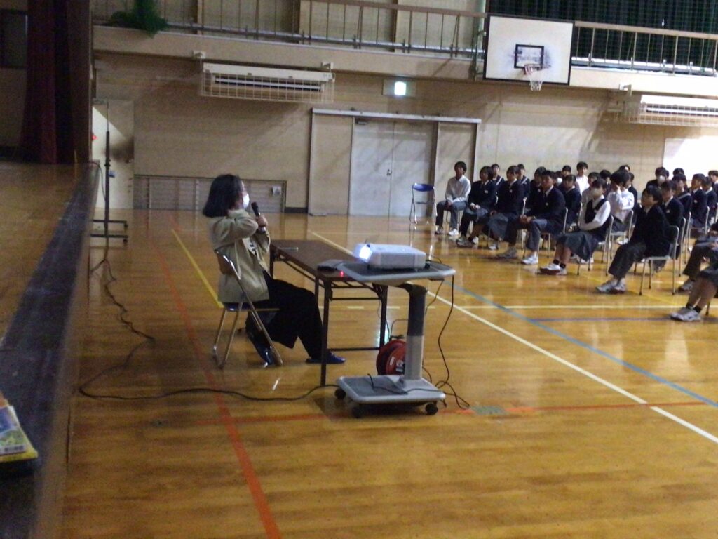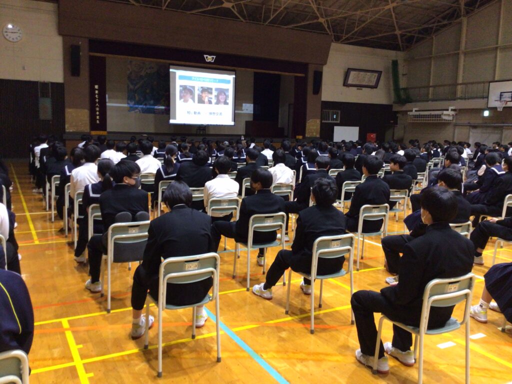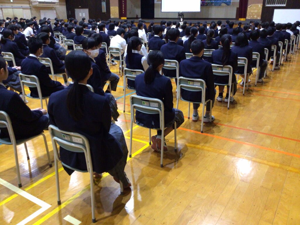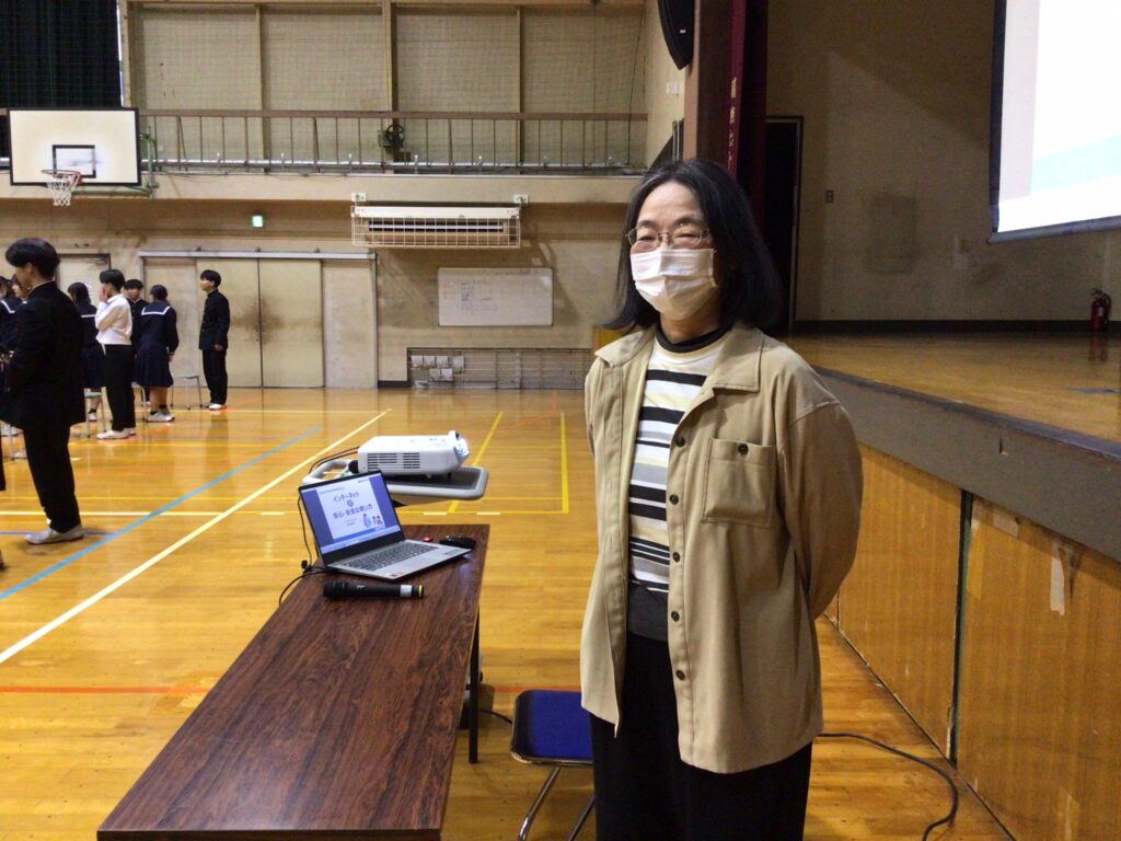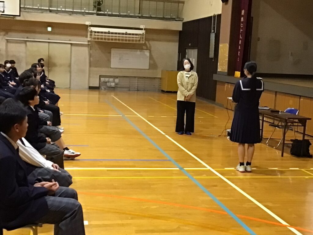 12月12日(金)6限、e-ネットキャラバンより「田中新子」先生を講師にお招えし、全校生徒を対象に「インターネット安心・安全利活用講座」を実施しました。残念ながら1年生ではインフルエンザによる学級閉鎖のクラスもあり、他の学級は教室からの遠隔ビデオ視聴となりましたが、どの学年も真剣に取り組む姿がありました。