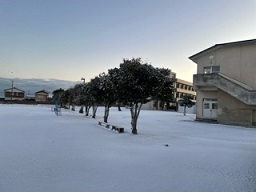 こんもりと積もっている訳ではないのですが…『雪の朝 二の字二の字の 下駄の跡』の句が頭の中をよぎる朝でした。しかし、凍っていましたので下駄どころか靴の跡もよくわかりませんでした(^^;)そんな雪の日になりましたが、本校の生徒は元気に登校してきました(^o^)「寒い」とは言うものの、いつもとさほど変わらず落ち着いた学校生活を送っていました。明日から三連休!!思い思いの過ごし方で充実した時間を送ることでしょう(*^-^*)