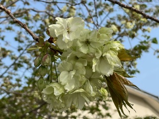 めずらしい緑色の花を咲かせる八重の桜の名前は「御衣黄(ギョイコウ)」と言います。
