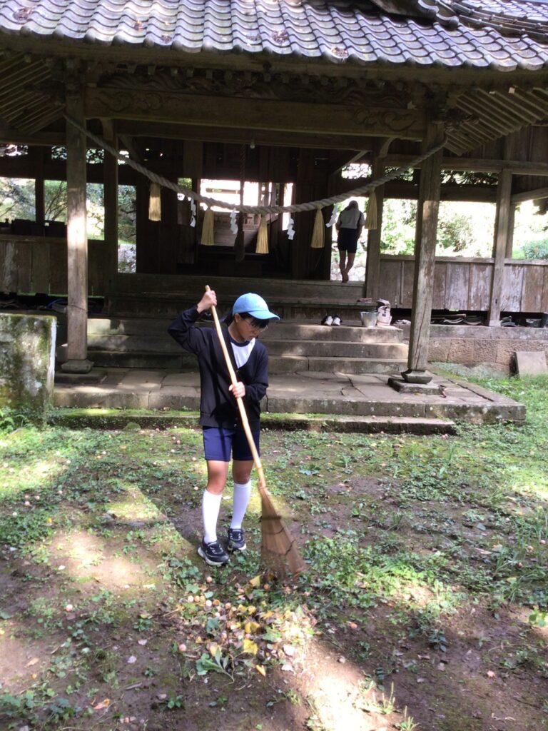 市民科の学習の一環として、地域の皆さまと一緒に清掃活動を行いました。当日は落ち葉やゴミを集め、境内や周辺をきれいにすることができました。ご協力いただいた皆さま、本当にありがとうございました。これからも地域を大切にし、美しい環境を守っていく活動を続けてまいります。