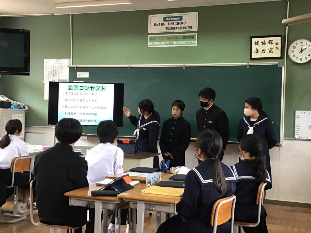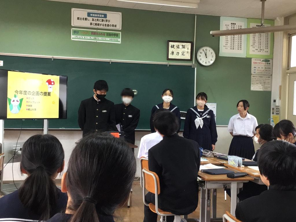 11月11日(火)の総合的な学習の時間で、文化祭で発表するための予行練習を行いました!田染サミットを終えてから3ヶ月、それぞれのグループで取り組んできた内容を発表する予定です。また昼休みには、生徒会生活部主催で「自転車チェック」を行いました。自転車を安全に乗るために、反射たすきやヘルメット・ブレーキなど5項目をチェックしました!みんなで安全を確認して、自転車に乗りましょう!